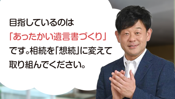 多額の財産があるわけでもありませんし、家族も円満ですが、テレビなどで遺産相続の争いをみるたびゾッとしてしまいました。私がいなくなっても今のように家族で仲良く暮らしていけるようにお手伝いしていただきました。